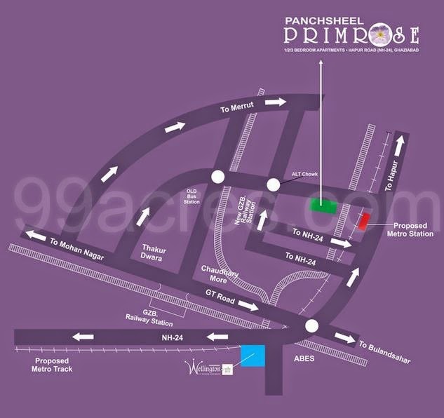 Panchsheel Primrose Located on the Hapur Road, Ghaziabad. Panchsheel Primrose is one of the prime projects by Panchsheel Group. The project has on its cards, 1 BHK apartments having a size of 645 sq.ft., 2BHK apartments ranging from a size of 815 sq. ft. to 1240 sq. ft. and 3 BHK apartments ranging from a size of 1297 sq. ft. to 1562 sq. ft.